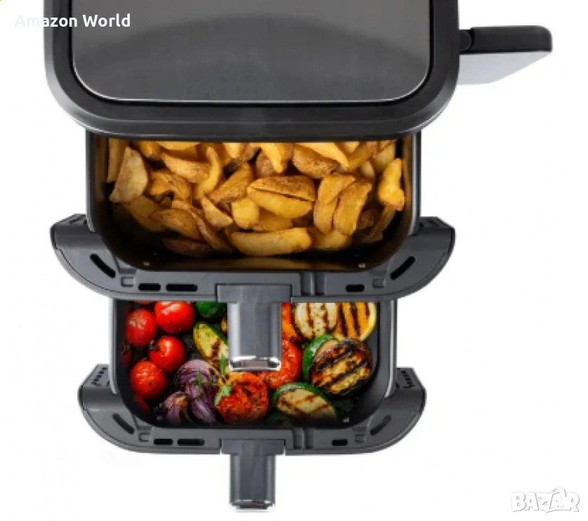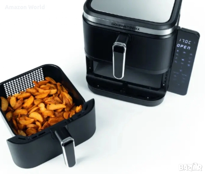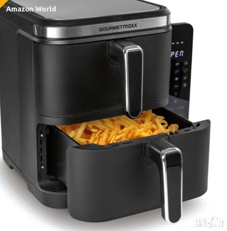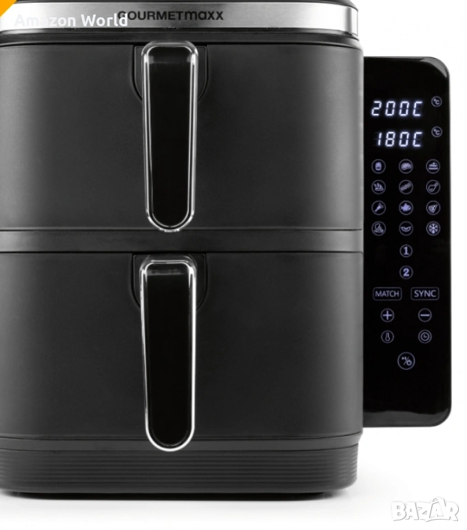 ‼️ Чисто Нов!‼️ Фритюрник с горещ въздух GOURMETMAXX вертикален с двойна кошница 11 литра черен
