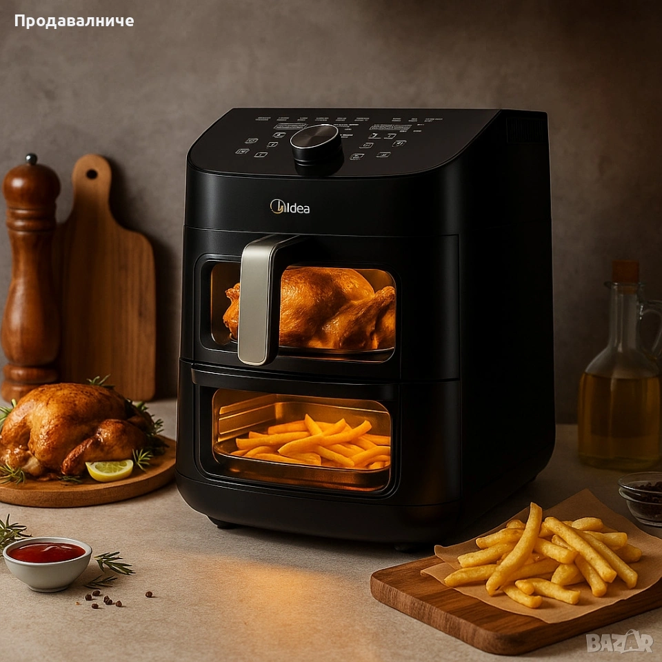 Еър Фрайър 2 в 1 - 11L - Midea MAD1100DADK - С две зони за готвене.