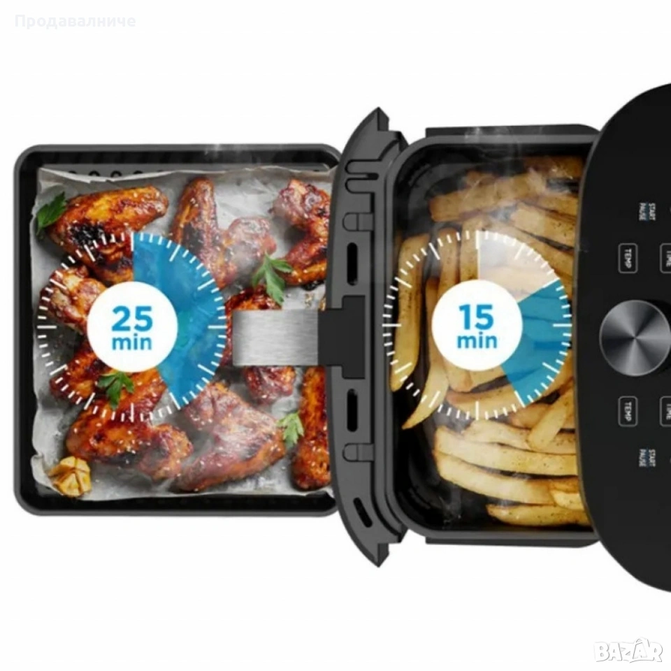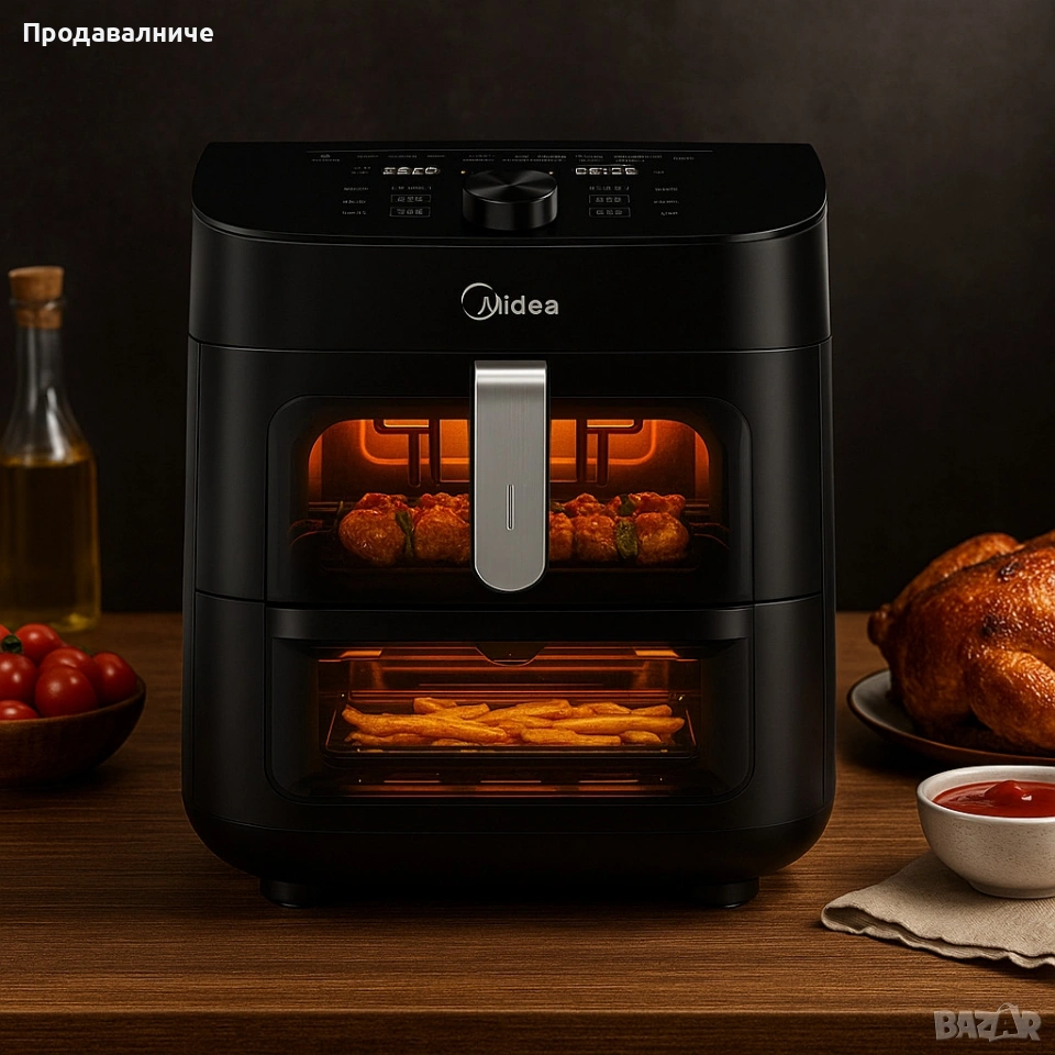 Еър Фрайър 2 в 1 - 11L - Midea MAD1100DADK - С две зони за готвене. → Обява 54239001