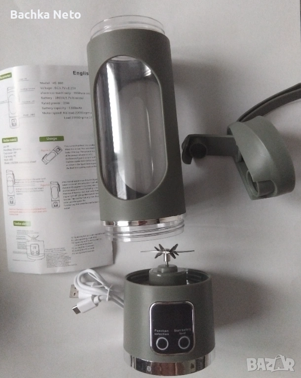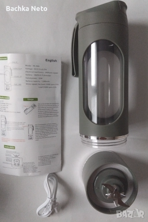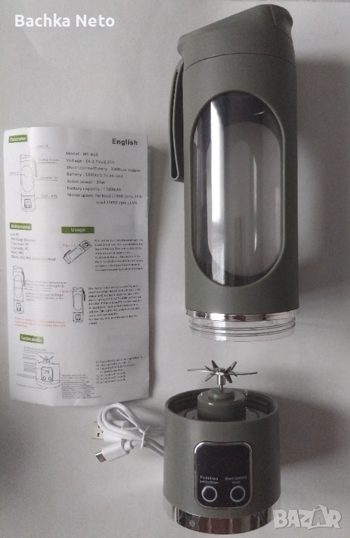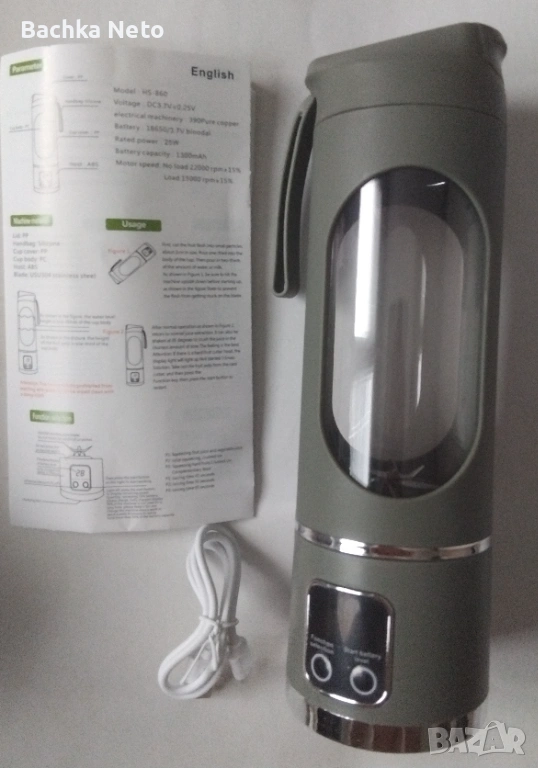 Компактен блендер с USB кабел за зареждане (в комплекта няма наличен адаптер). Допълнителна информация за продукта е налична в снимките.