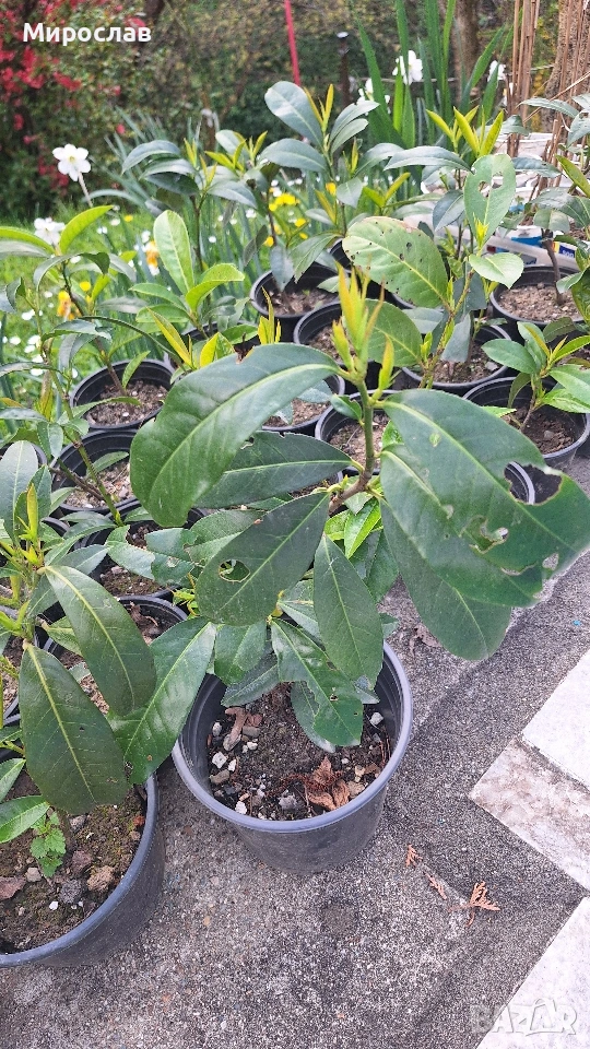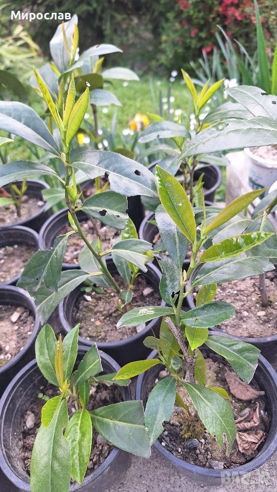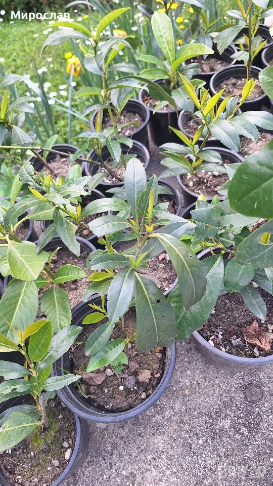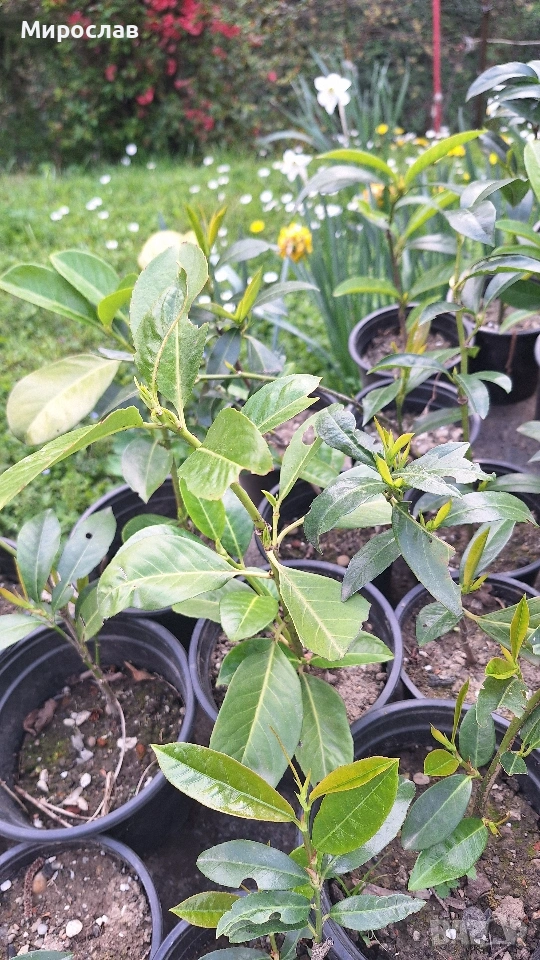 Продавам декоративен храст Лавровишна на цена 2.5 евро за брой или 4 евро за 2 броя. Растенията са добре вкоренени, двугодишни, засети в 1.5 л. контейнери. Снимките на растенията са реални като последните три само са примерни. Доставката се извършва за сметка на купувача. Доставям с „Еконт“ или „Спиди“ с опция преглед, може и лично предаване. Благодаря.