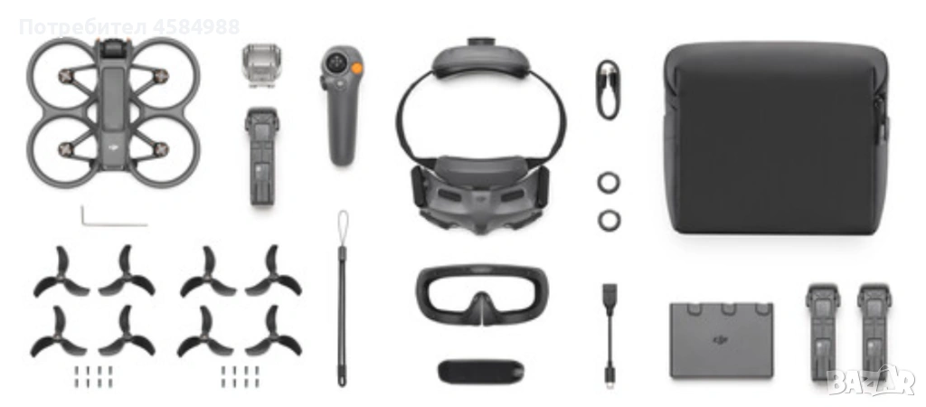 Нов, оригинална опаковка, неразопакован, дрон DJI Avata 2 FPV Drone with Goggles 3 & 3-Battery Fly More Combo с допълнителни аксесоари.