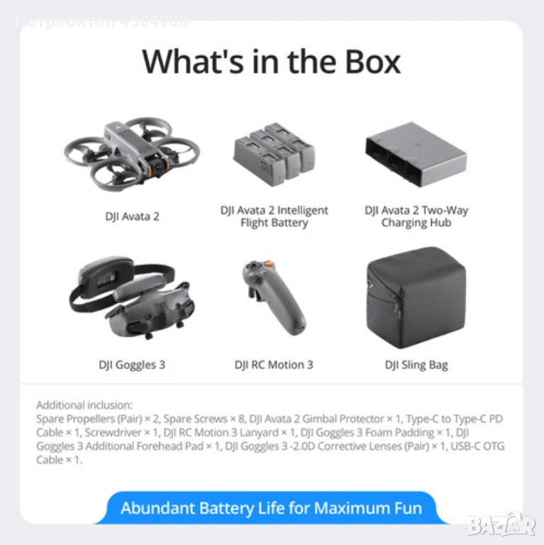 DJI Avata 2 FPV Drone with Goggles 3 & 3-Battery Fly More Combo, снимка 1 - Дронове и аксесоари - 54239523 DJI Avata 2 FPV Drone with Goggles 3 & 3-Battery Fly More Combo, снимка 2 - Дронове и аксесоари - 54239523 DJI Avata 2 FPV Drone with Goggles 3 & 3-Battery Fly More Combo, снимка 3 - Дронове и аксесоари - 54239523 DJI Avata 2 FPV Drone with Goggles 3 & 3-Battery Fly More Combo, снимка 4 - Дронове и аксесоари - 54239523 DJI Avata 2 FPV Drone with Goggles 3 & 3-Battery Fly More Combo, снимка 5 - Дронове и аксесоари - 54239523 DJI Avata 2 FPV Drone with Goggles 3 & 3-Battery Fly More Combo, снимка 6 - Дронове и аксесоари - 54239523 DJI Avata 2 FPV Drone with Goggles 3 & 3-Battery Fly More Combo, снимка 7 - Дронове и аксесоари - 54239523 DJI Avata 2 FPV Drone with Goggles 3 & 3-Battery Fly More Combo, снимка 8 - Дронове и аксесоари - 54239523 DJI Avata 2 FPV Drone with Goggles 3 & 3-Battery Fly More Combo, снимка 9 - Дронове и аксесоари - 54239523 DJI Avata 2 FPV Drone with Goggles 3 & 3-Battery Fly More Combo, снимка 10 - Дронове и аксесоари - 54239523 DJI Avata 2 FPV Drone with Goggles 3 & 3-Battery Fly More Combo, снимка 11 - Дронове и аксесоари - 54239523 DJI Avata 2 FPV Drone with Goggles 3 & 3-Battery Fly More Combo, снимка 12 - Дронове и аксесоари - 54239523 DJI Avata 2 FPV Drone with Goggles 3 & 3-Battery Fly More Combo, снимка 13 - Дронове и аксесоари - 54239523 DJI Avata 2 FPV Drone with Goggles 3 & 3-Battery Fly More Combo, снимка 14 - Дронове и аксесоари - 54239523 DJI Avata 2 FPV Drone with Goggles 3 & 3-Battery Fly More Combo, снимка 15 - Дронове и аксесоари - 54239523 DJI Avata 2 FPV Drone with Goggles 3 & 3-Battery Fly More Combo, снимка 16 - Дронове и аксесоари - 54239523 DJI Avata 2 FPV Drone with Goggles 3 & 3-Battery Fly More Combo, снимка 17 - Дронове и аксесоари - 54239523 DJI Avata 2 FPV Drone with Goggles 3 & 3-Battery Fly More Combo, снимка 18 - Дронове и аксесоари - 54239523 1/18
