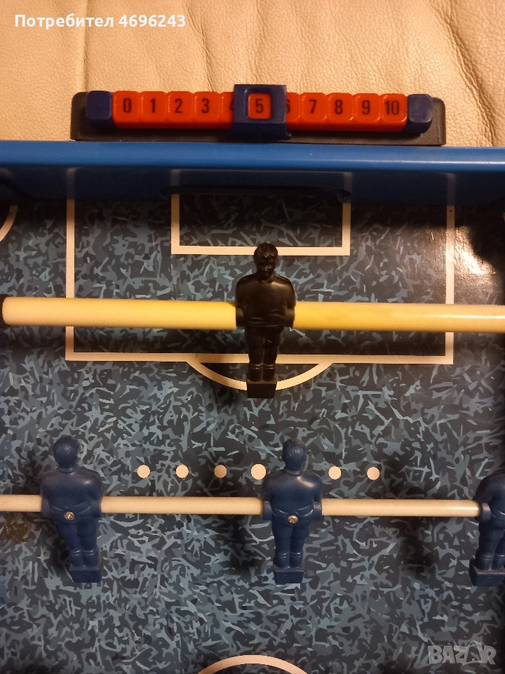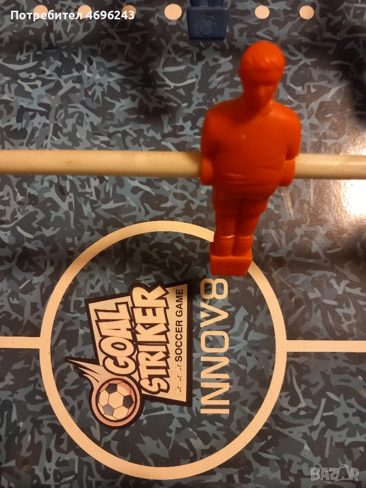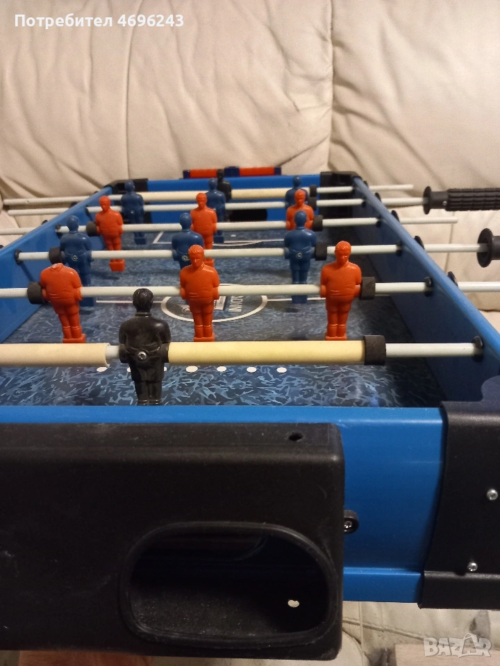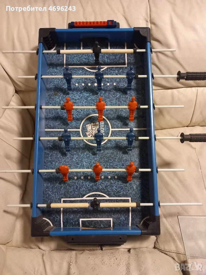 Детска игра джаги. Размери - 66 × 36 см. Забележки (виждат се на снимките): липсват дръжки, единият футболист няма глава. Играта е ретро, затова има забележки, но пак може да се играе. Затова и цената и е такава.