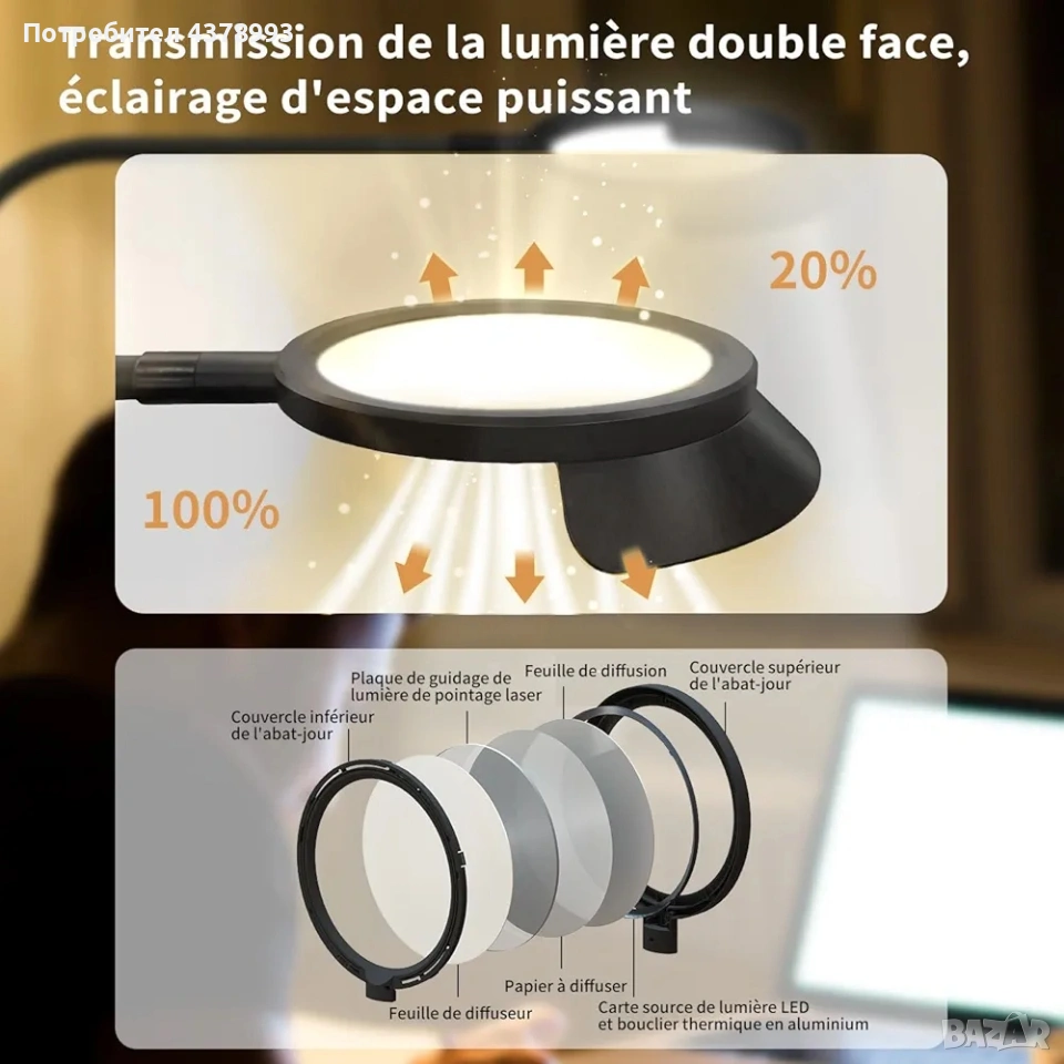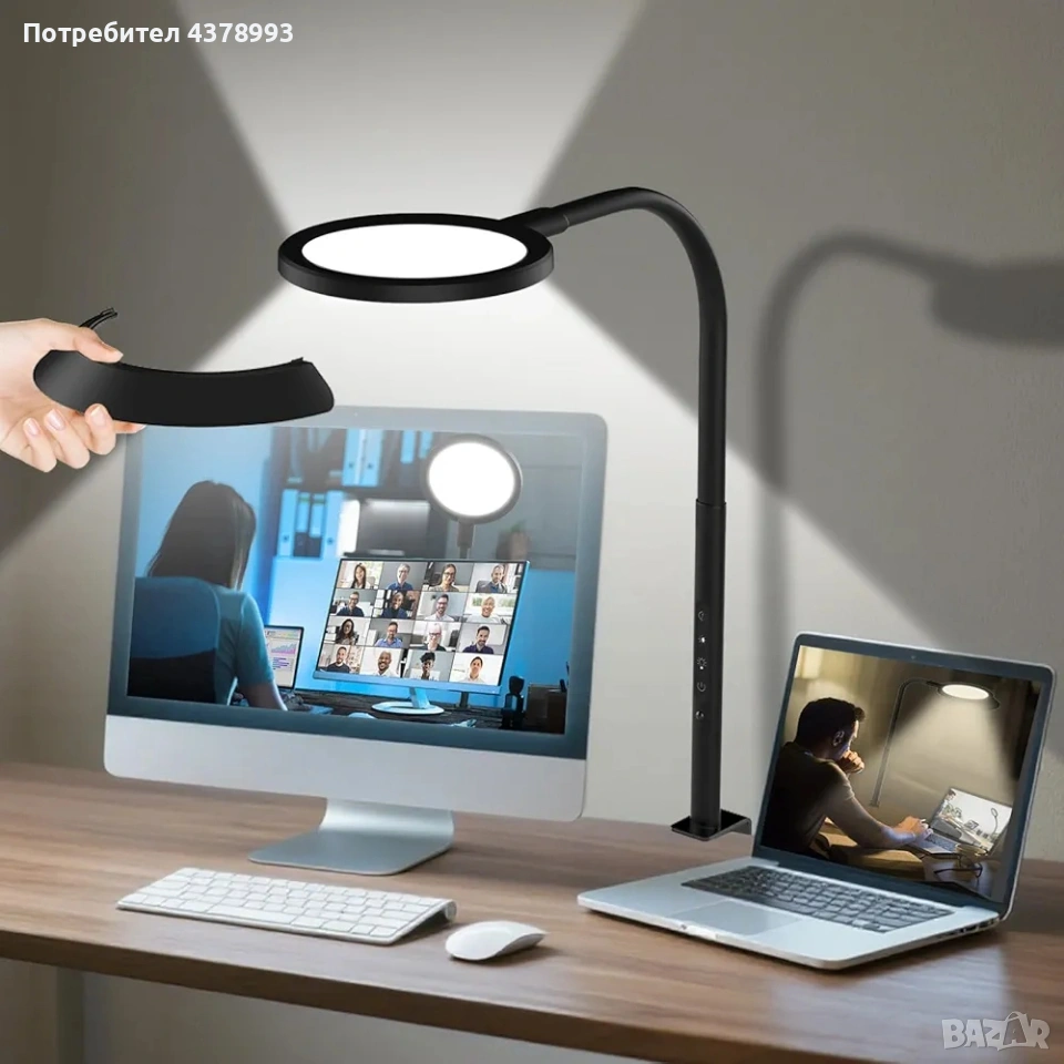 Двустранна LED Настолна Лампа с регулиране на светлина и рамо, Дистанционно, Сенник и Стяга – НОВА!