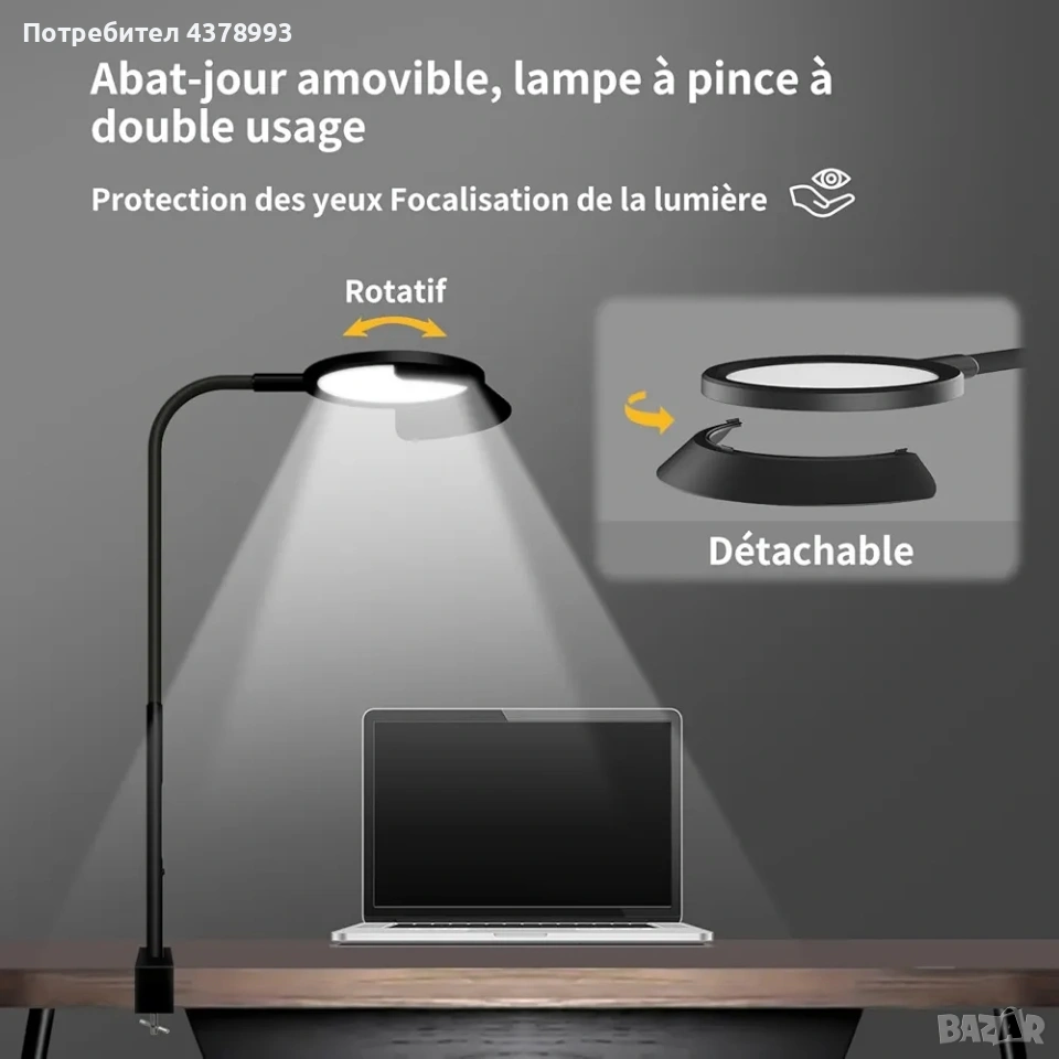 Подвижен сенник: Намалява отблясъците и предпазва очите от директна светлина (идеален за дълга работа пред монитор).
