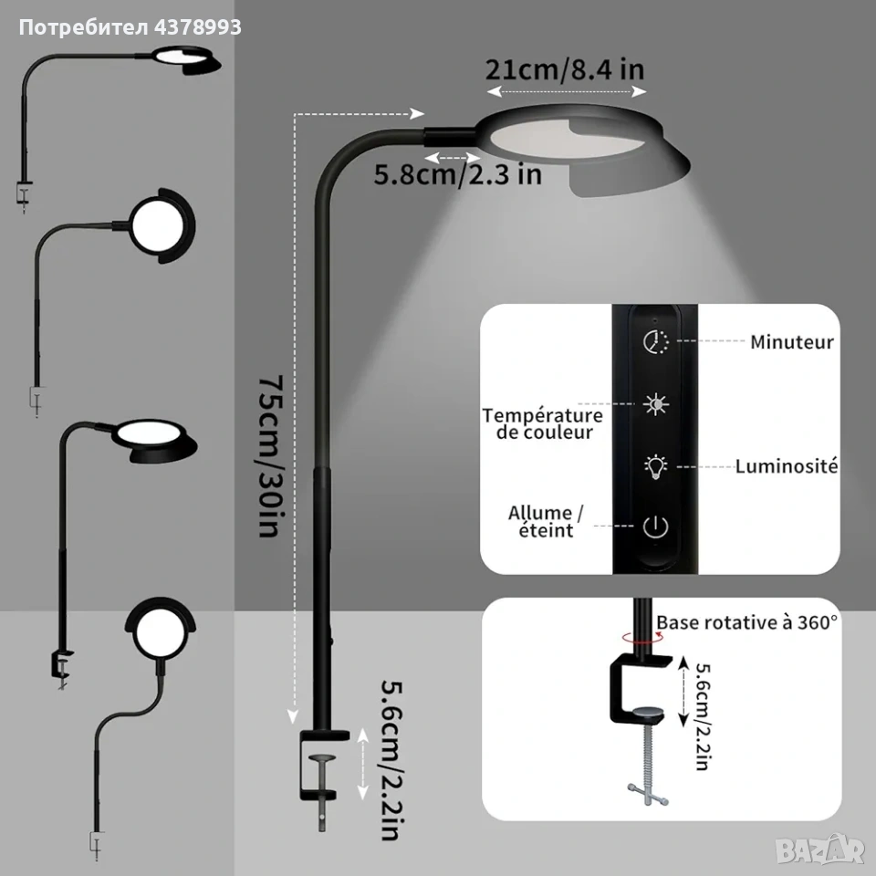 Изключително подходяща за офис работа, чертане, дизайн, гейминг или четене. Професионална архитектурна лампа с регулирана на светлината. Стабилно се захваща със затягане.