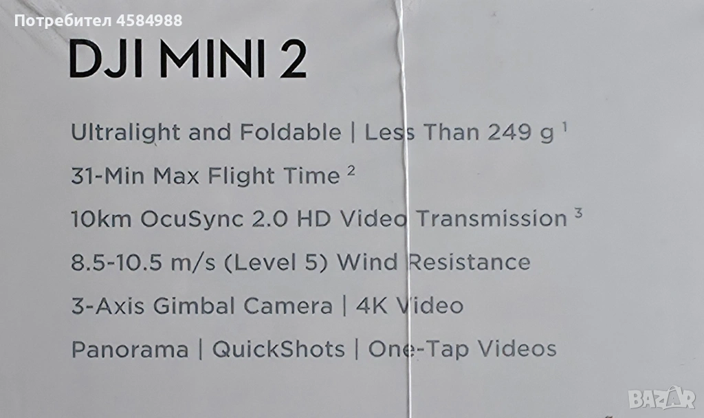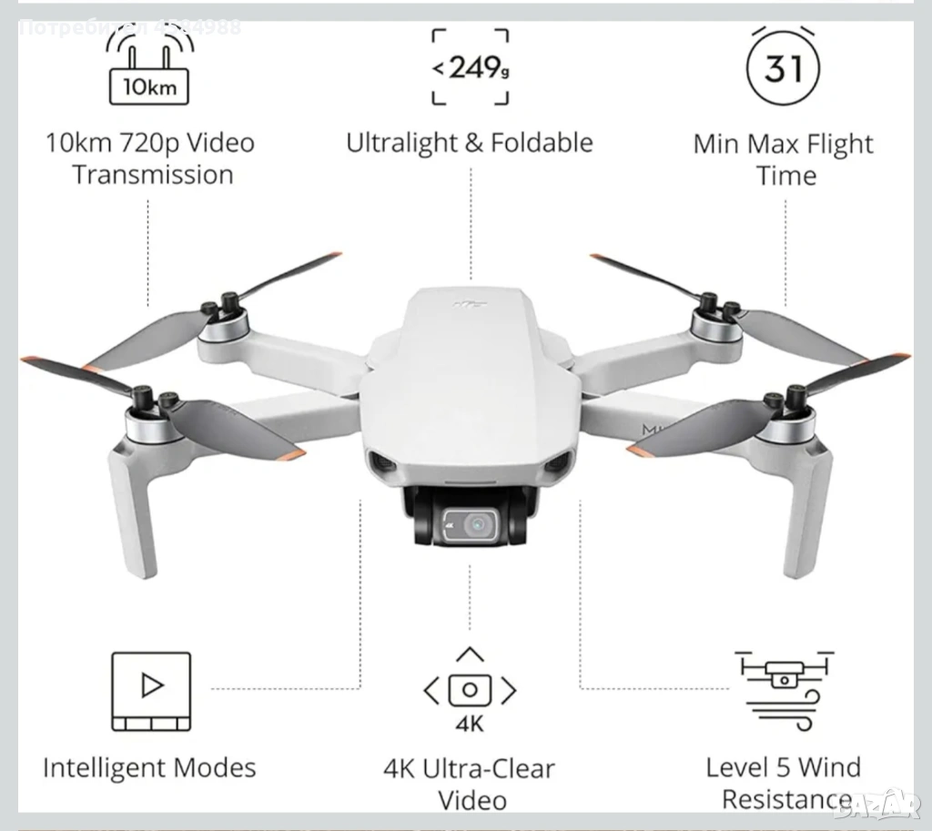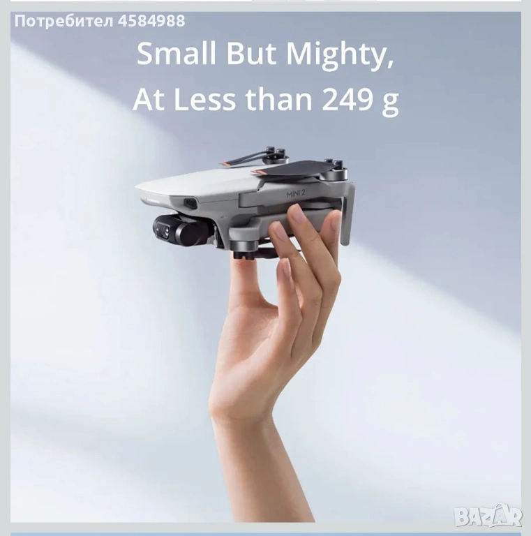 Дронът е ултра лек, с тегло под 250 гр. и не подлежи на регистрация или рестрикции.