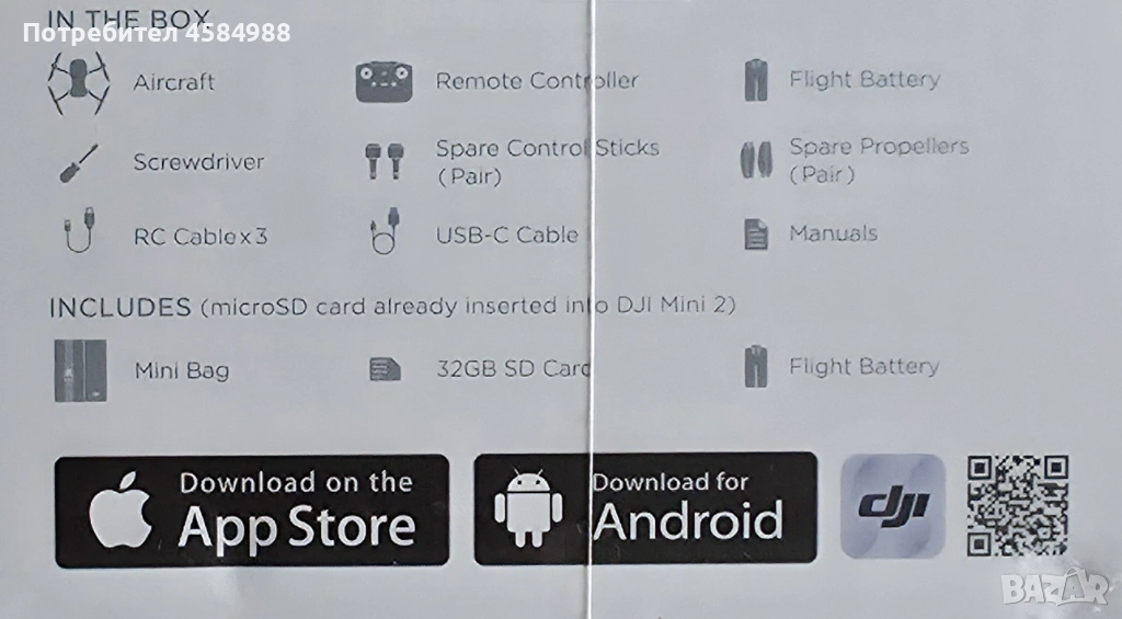 - 32GB SD карта, поставена в дрона - 1 бр.