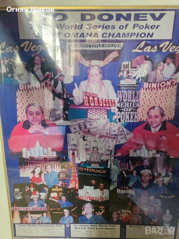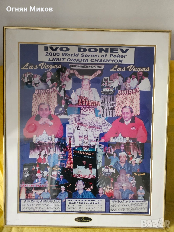 Лимитирана рамка (1/2) – WSOP 2000 Лас Вегас Иво Донев шампион, подписана → Обява 54240095