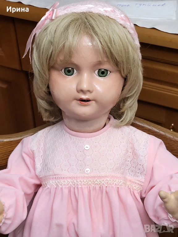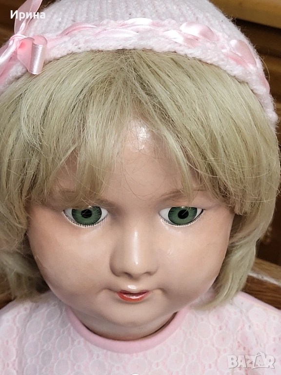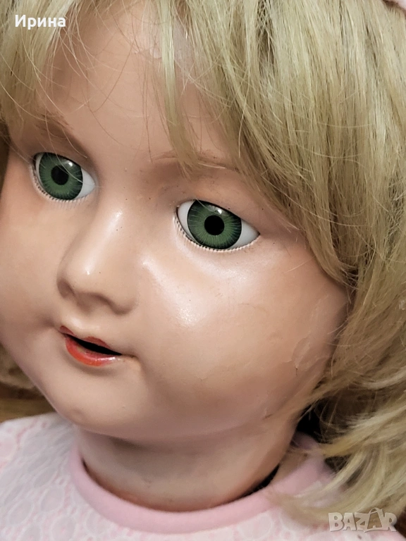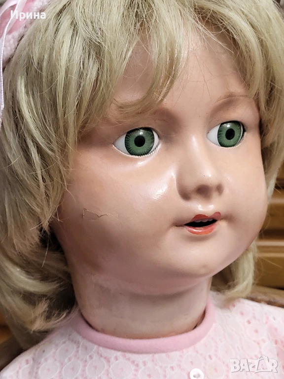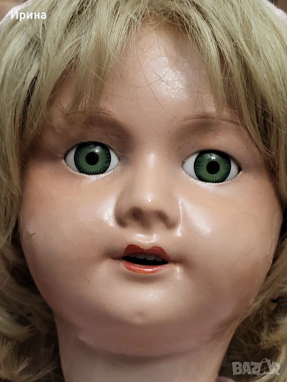 Антична кукла, калъп номер 301, от Jumeau. Височина: 67 см. Това е оригиналната композитна глава, мостра от творчеството на този художник. Оригиналното композитно детско тяло Koenig & Wernicke е в отлично състояние. Тя е много пълничка и масивна като бебе. Година на производство: 1940 г., вероятно малко по-късно. Има очарователно изражение на лицето, нежна усмивка, оголваща зъби, и красиви зелени очи. Перуката изработена от канекалон. Куклата има доста еластичност и може да стои без стойка. Тя е облечена в красива рокля с етикет на производителя от Вритания, дантелени бикини и плетена шапка. На краката си има бебешки ботуши. Това са късни, почти последните версии на кукли Jumeau. Цената на тази кукла е символична; подходяща е както за колекция, така и за домашен декор.