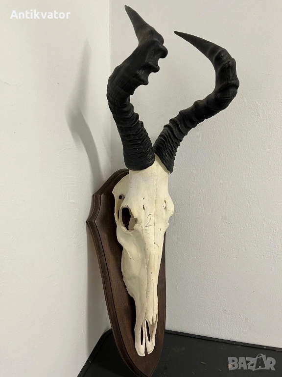 Красив трофей от хартебесет с дървена поставка.