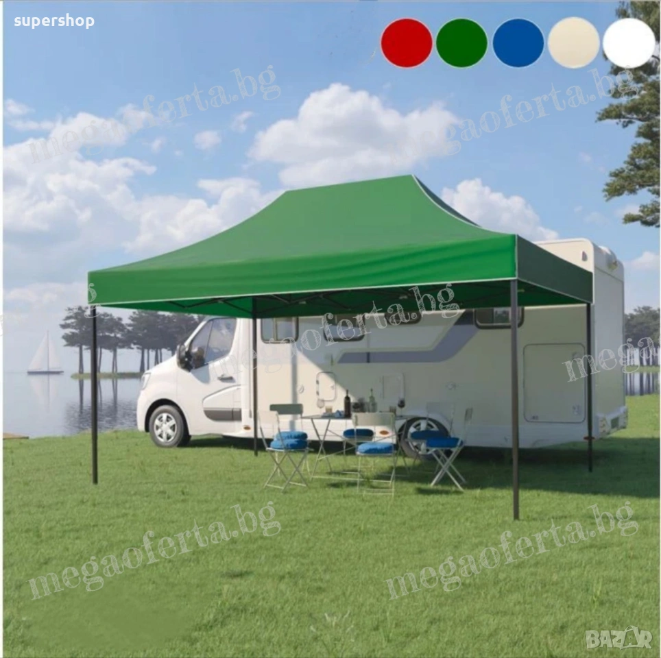 Сгъваема шатра със 100% водоустойчиво покривало, гумирано с промазан плат.