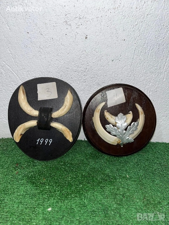 Цената за двойните зъби от втората снимка с дърворезбованата поставка е 70 евро.