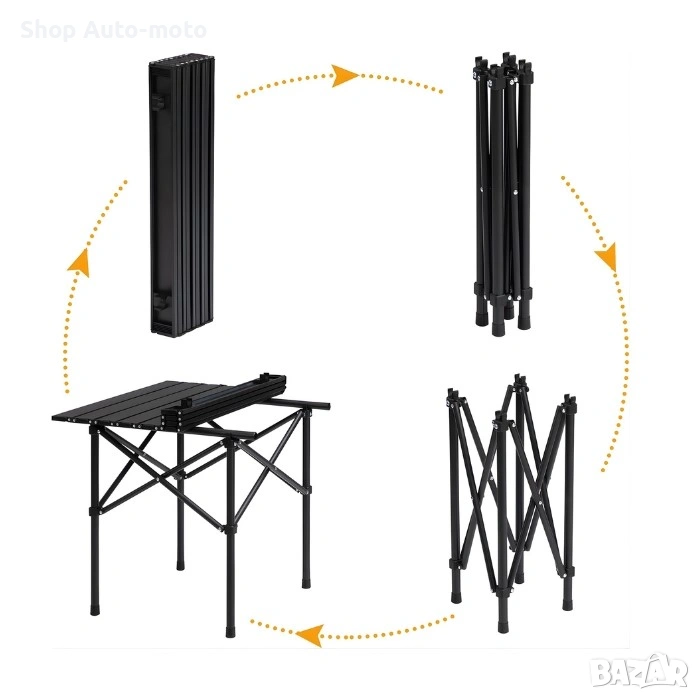 Със своя интелигентен сгъваем дизайн, масата се разгъва и прибира за секунди, без нужда от инструменти. В сгънато състояние е компактна и лесна за пренасяне, което я прави перфектен спътник при пътувания.