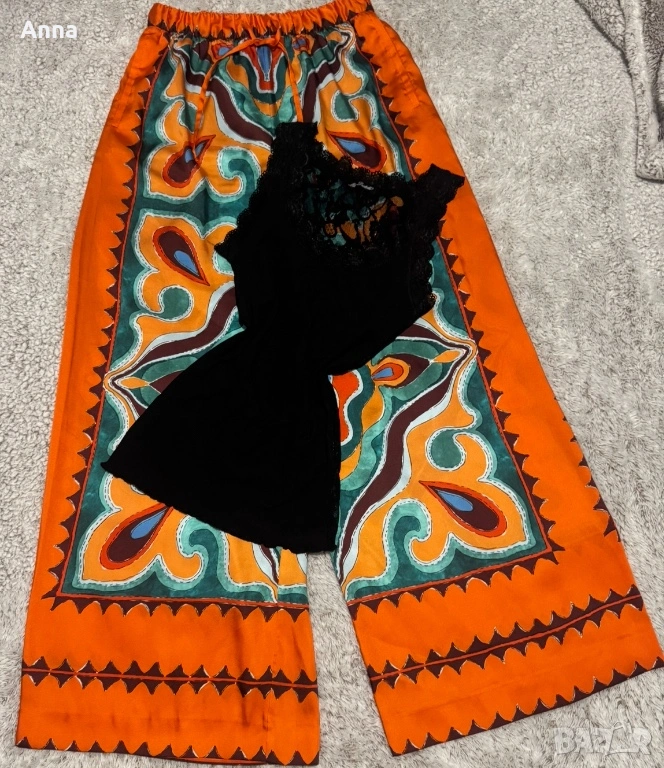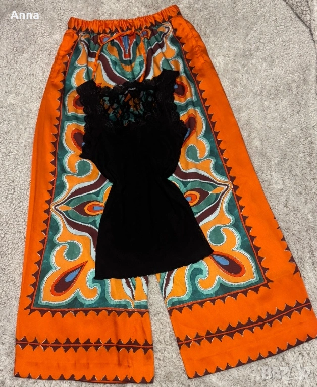 Набор🔥. Леки копринени панталони от Zara, женствен топ с дантелен гръб🌸👌