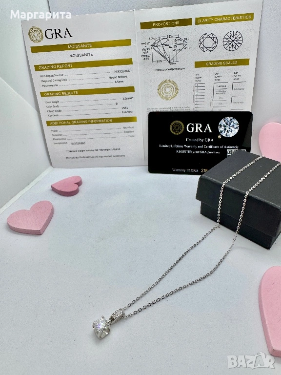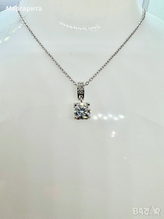 Сребърно колие с мойсанит (диамант) 1 карат → Обява 54241140