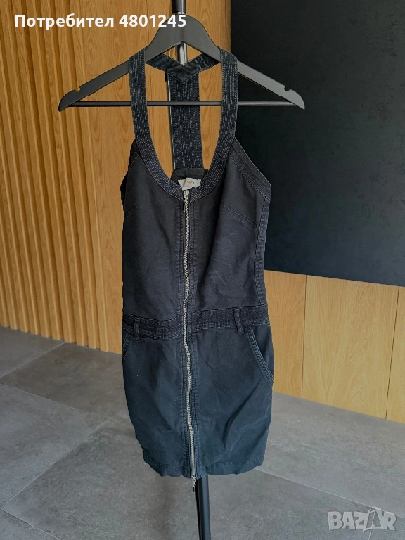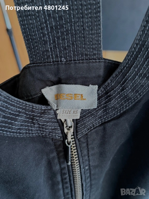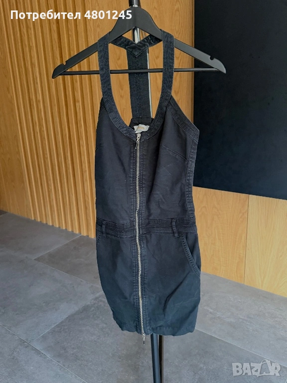 Продавам страхотна оригинална къса рокля на световната марка Diesel. Моделът е изработен от висококачествен, плътен деним в цвят графит. Отличава се с масивен метален цип по цялата дължина отпред, който позволява да регулирате дълбочината на деколтето и цепката. Истинският акцент е гърбът, който е напълно отворен, със специфични презрамки тип "холтер", излизащи от деколтето и пресичащи се ефектно в горната част на гърба. Моделът стои много предизвикателно и модерно.