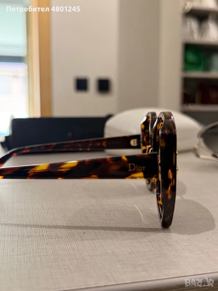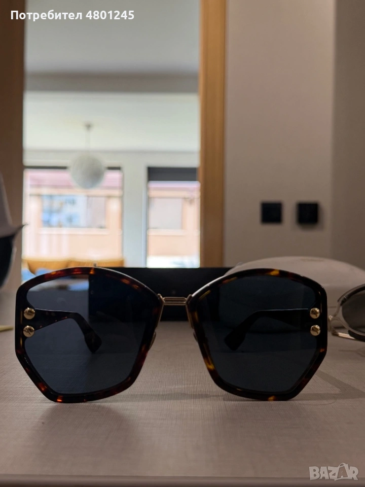 Продавам изключително елегантни дамски слънчеви очила с марка Dior. Моделът е с модерна, леко шестоъгълна (oversized) форма, която придава изтънченост и стил.