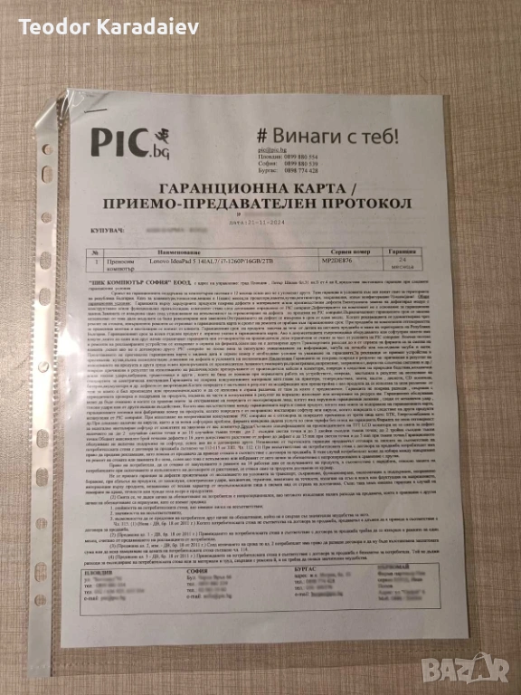 До ноември 2026, Lenovo официална гаранция. Прехвърля се на купувача,