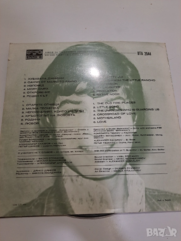 Продавам оригинална винилова плоча Емил Димитров – BTA 2044, издание на Балкантон. Плочата е със запазена предна и задна обложка и съдържа шест песни, сред които „Отарите огнища“, „Кръстопът“, „Родина“ и „Любов“.