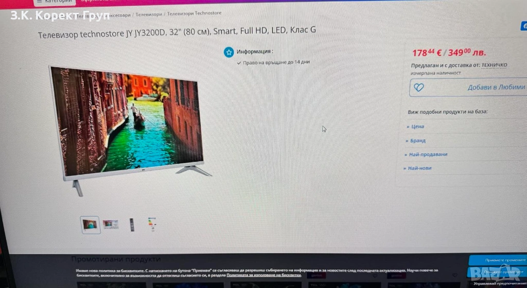 Продавам Телевизор technostore JY JY3200D, 32″ (80 см), Smart, Full HD, LED в отлично състояние с дистанционно и кутия и документи , без гаранция.