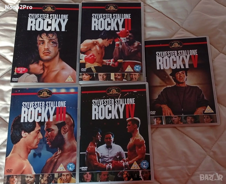 Продавам DVD колекция с 5 филма от поредицата Rocky – легендарната история с Sylvester Stallone.