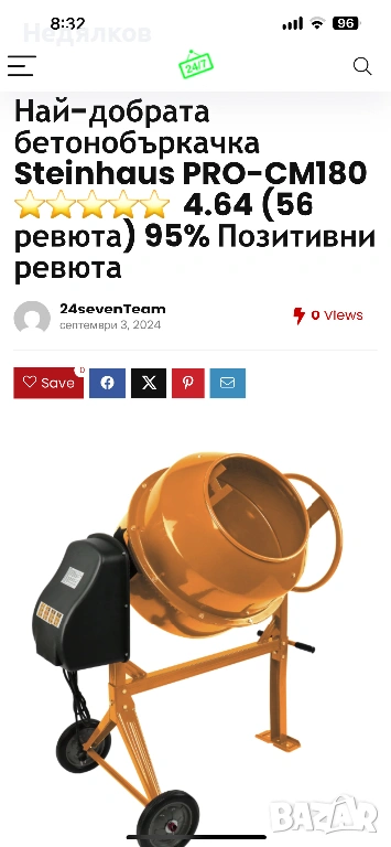 Мощен 850W мотор: Моторът на Steinhaus PRO-CM180 предоставя отлична мощност, която е достатъчна за смесване на различни видове материали като бетон, хоросан и други строителни смеси. Той осигурява ефективна и равномерна работа без претоварване.