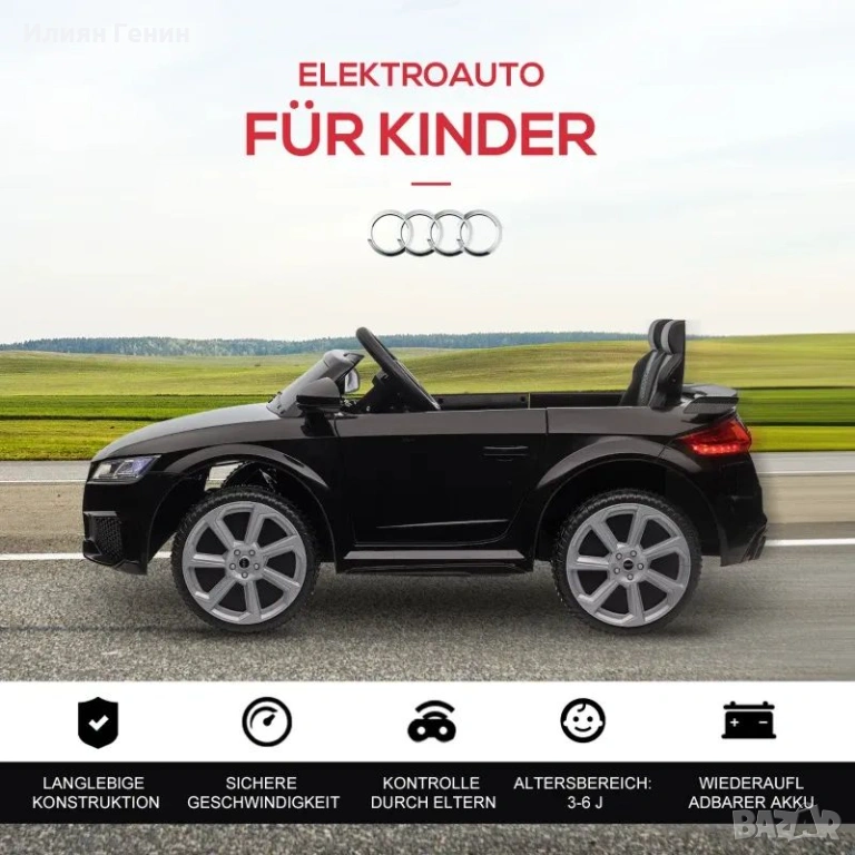 Детска електрическа кола HOMCOM Audi, с 2.4G дистанционно управление, музика, клаксон, LED, USB, за деца 3-5 години, черна - 150.00 €.