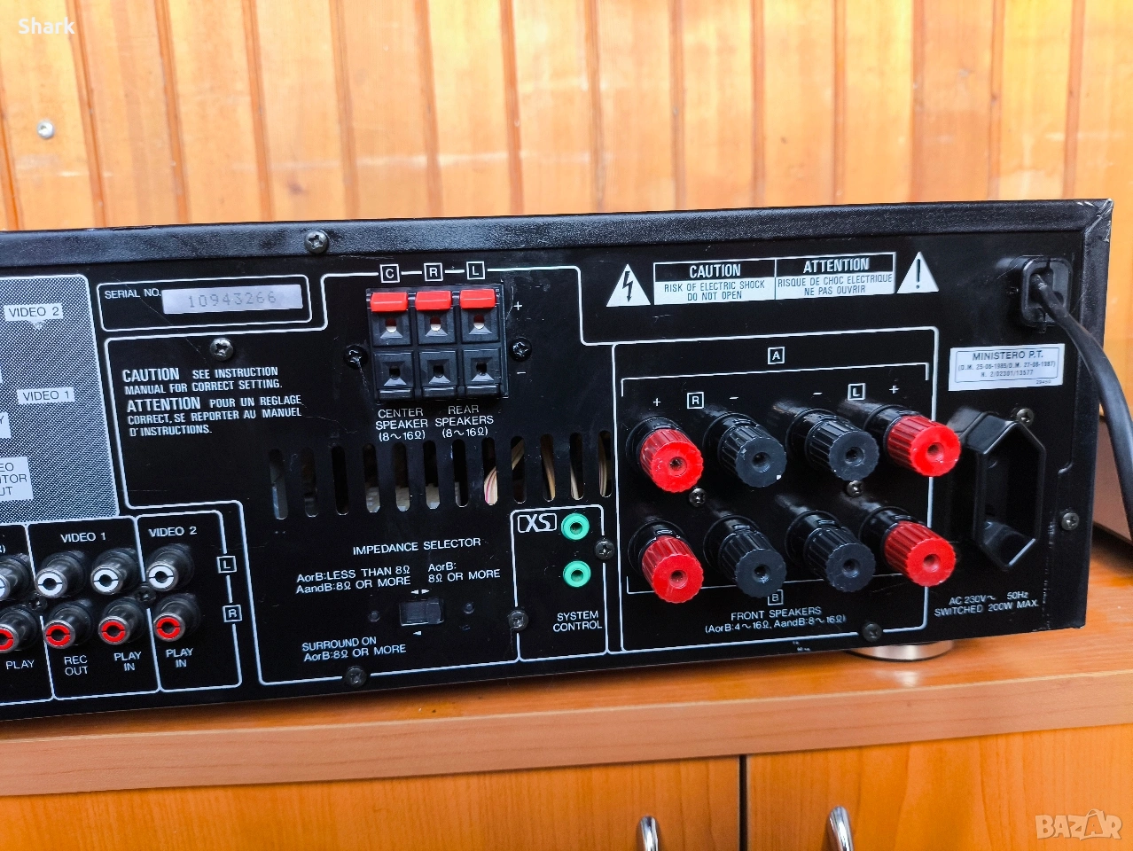 Транзисторен ! Страхотен звук ! Преден алуминиев панел ! Отзад има превключвател и може да се избира между обикновен 2 канален усилвател или 5 канален ! Лауднеса е с потенциометър! Много функции ! Много добър външен вид ! От старото качество ! Основни технически характеристики: Мощност: Стерео режим: 100 – 110 вата на канал при 8Ω. Съраунд режим: 65W (преден), 65W (централен) и 15W (заден). Аудио качество: Ниски нива на хармонични изкривявания (THD) от около 0.06% в стерео режим. Честотна характеристика: От 10Hz до 50kHz. Входове: 6 аналогови аудио входа, включително Phono вход за грамофон. Декодери: Поддържа Dolby Pro Logic и Dolby 3 Channel съраунд формати.