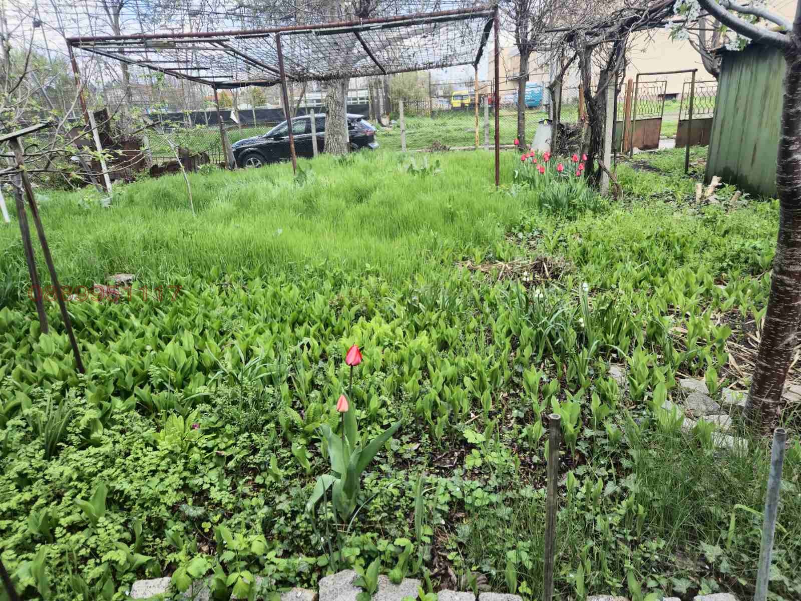 Имотът е с площ 345 кв.м. включващ стара къща (ок. 45 кв.м. - за разрушаване), малка постройка за склад, гараж (за две коли) и хубав двор с лице към улицата (14м).
