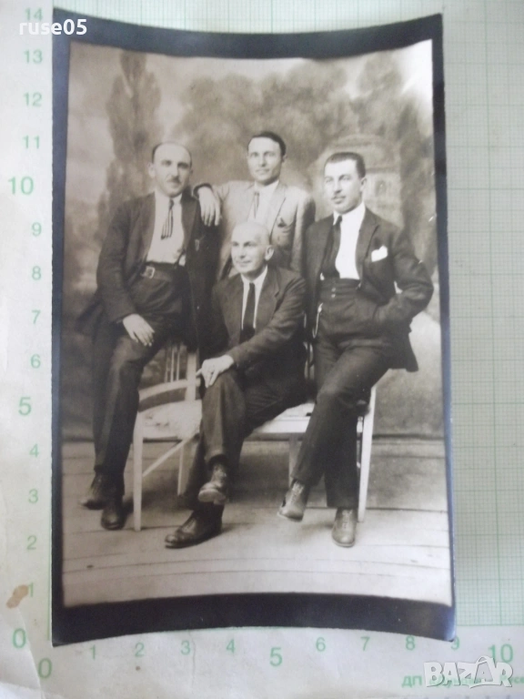 Снимка на четирима мъже на пейка във фотостудио стара → Обява 54242564