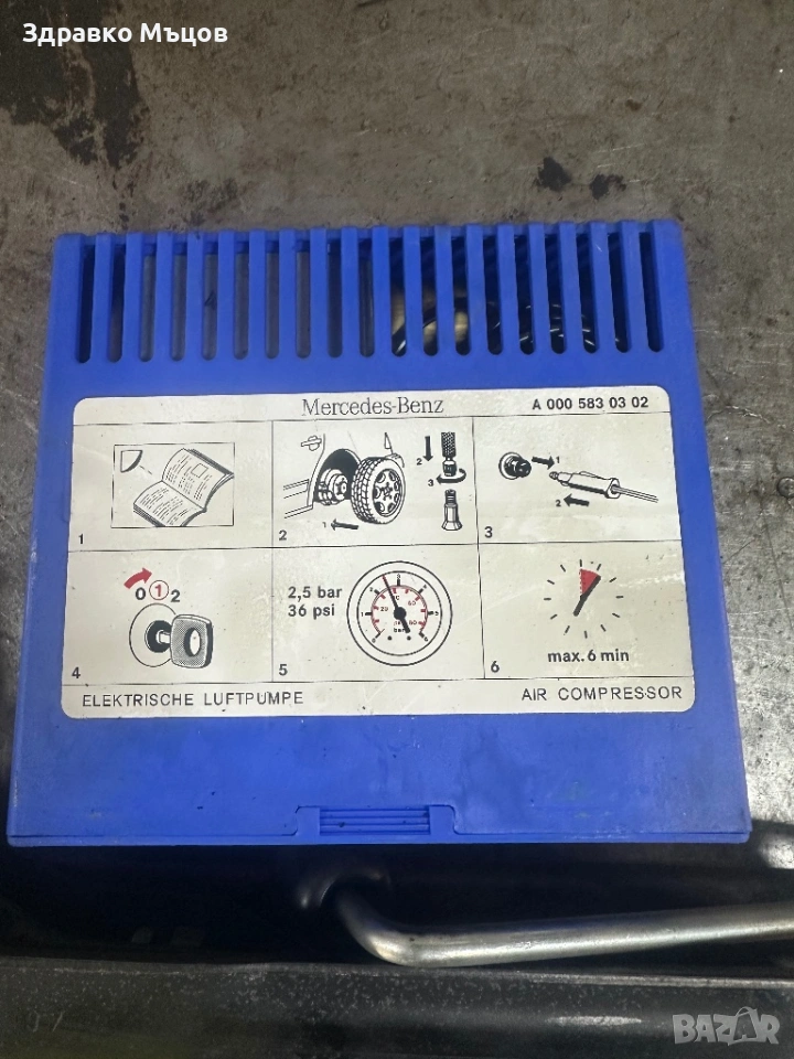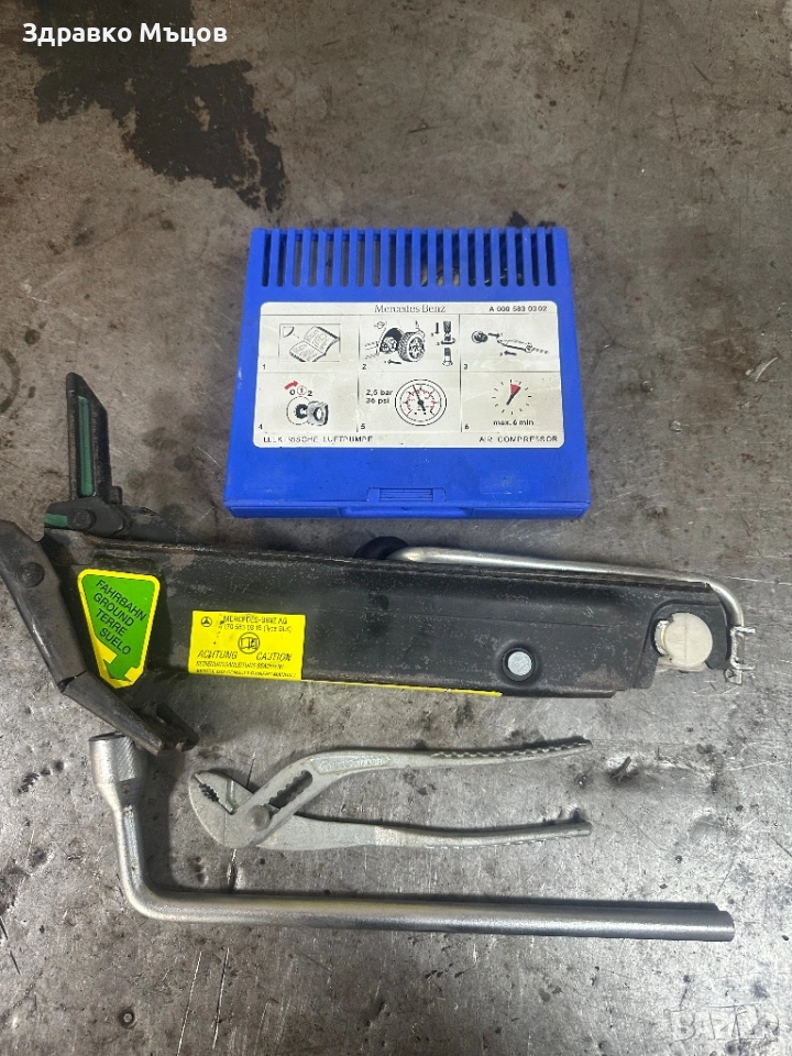 Състои се от оригинален компресор,крик ключ и клещи