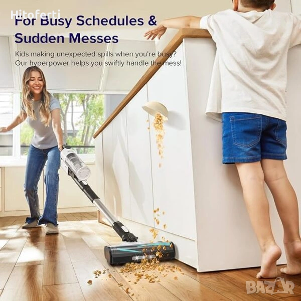 - & : Лесно почистване отгоре надолу, лежи плоско на 180°, за да достигнете под мебелите, и включва 3 LED светлини за откриване на прах, докато вървите