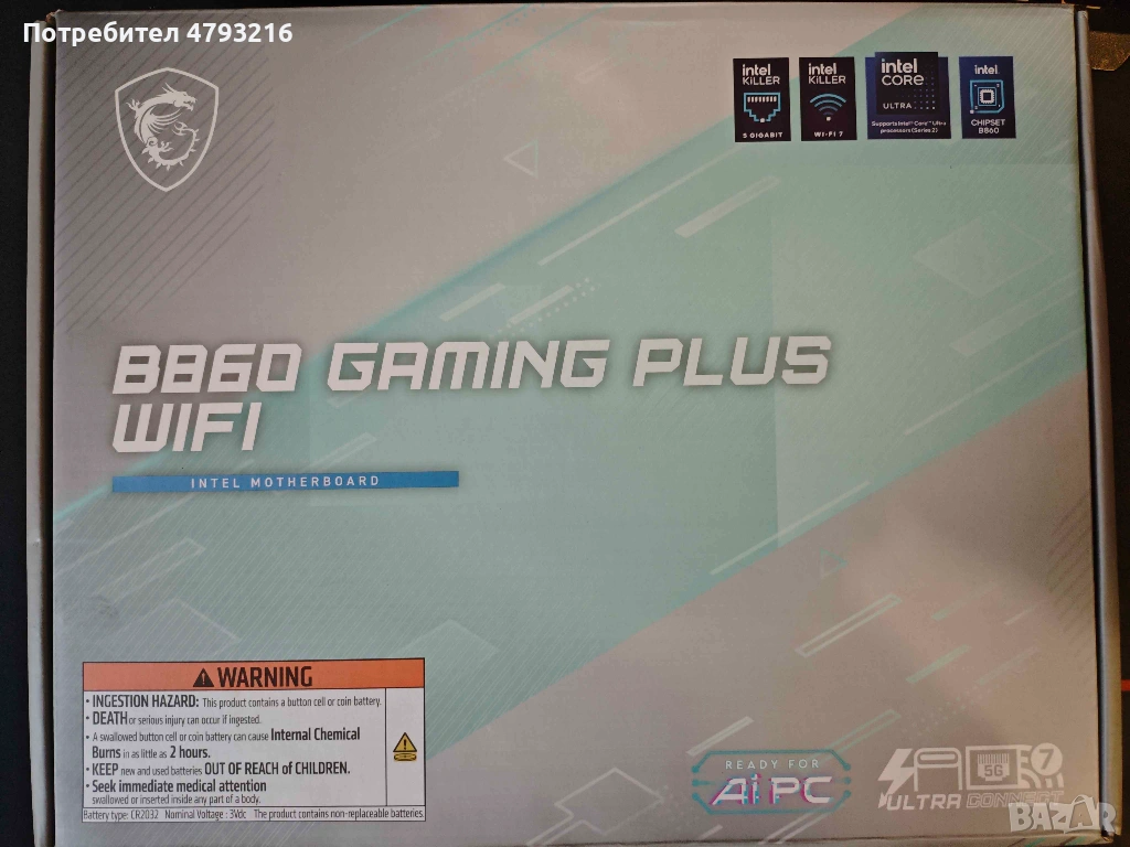 Дънна платка B860 MSI Gaming plus WIFI, снимка 1 - Дънни платки - 54242854 Дънна платка B860 MSI Gaming plus WIFI, снимка 2 - Дънни платки - 54242854 Дънна платка B860 MSI Gaming plus WIFI, снимка 3 - Дънни платки - 54242854 Дънна платка B860 MSI Gaming plus WIFI, снимка 4 - Дънни платки - 54242854 1/4