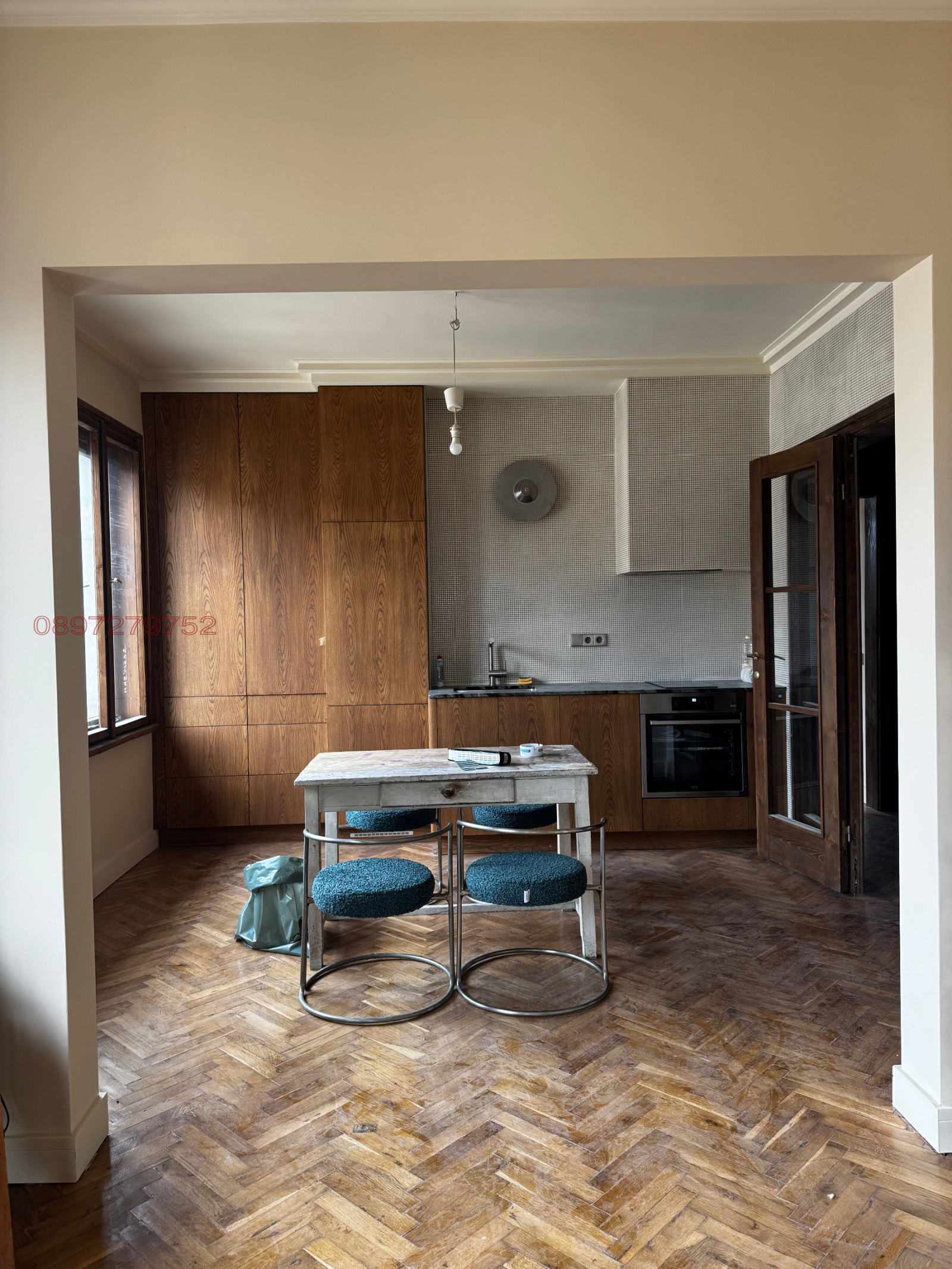 ДИЗАНЕЙРСКИ РЕМОНТ! Давам под наем апартамента си след капитален ремонт. Никога не се е давал по наем. Реставрирани са дограмите, порталите и паркета, изцяло нова кухня, минималистичен дизайн между стар и нов модернизъм.Необзаведен е ( ще има обаче столова маса с 4 столове и диван, които в момента се изготвят), има две спални, голямо антре и една тоалетна. Изложението е запад-изток, има много светлина. Давам го от июни 2026 за минимум 2 години. 1 месец депозит + 1 предплата за един месец наем. Може с домашни любимци. Всички останали въпроси, моля по телефона да ги изговорим.