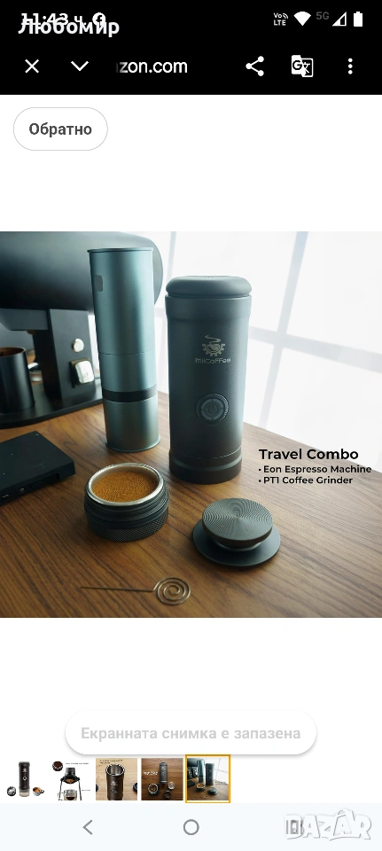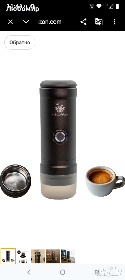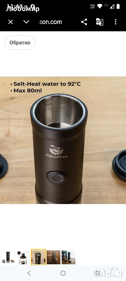 MiiCoffee Eon Преносима еспресо машина, кафемашина за пътуване със самозагряване и USB-C