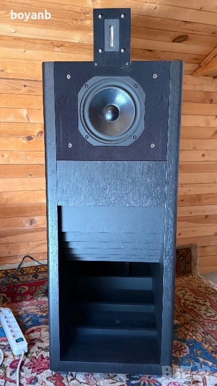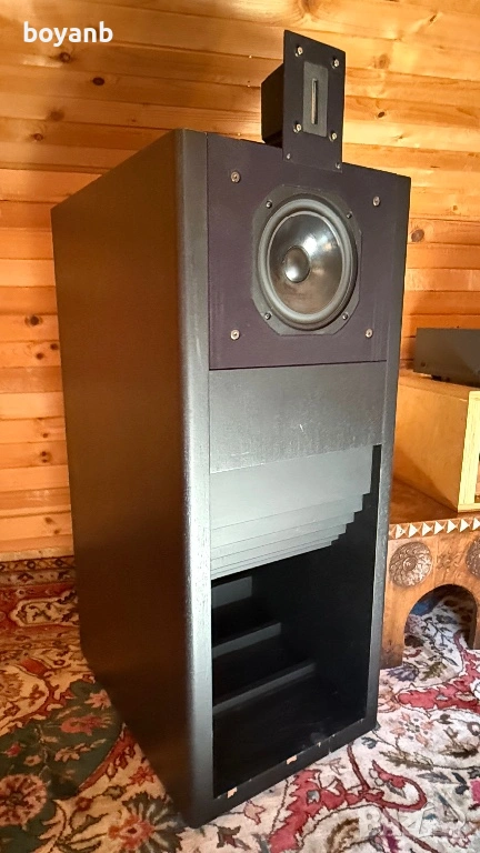 Чифт чудесно свирещи хорни Nagaoka D58ES с говорители Audax и лентов ВЛД 40. Много масивни, направени от брезов шперплат и фурнировани.