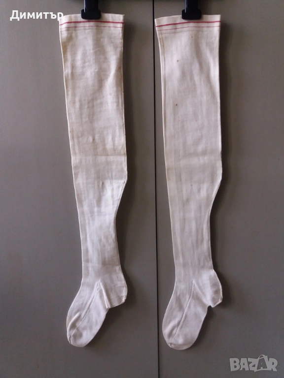 Чорапи: дължина 66 см, дължина от отвора до петата 54 см, стъпало 19 см дължина, широчина в прасеца 7 см. Подходящи за 12-16 годишна възраст.