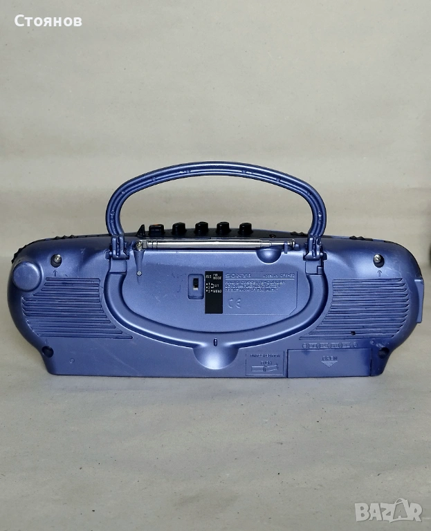 Мини радиокасетофон Sony CFS-E2, работи отлично - тестван. Захранва се с 4 х АА батерии (не са включени). За по-добро описание, моля вижте снимките и видеото ми. Изпращам по Спиди и по Еконт.