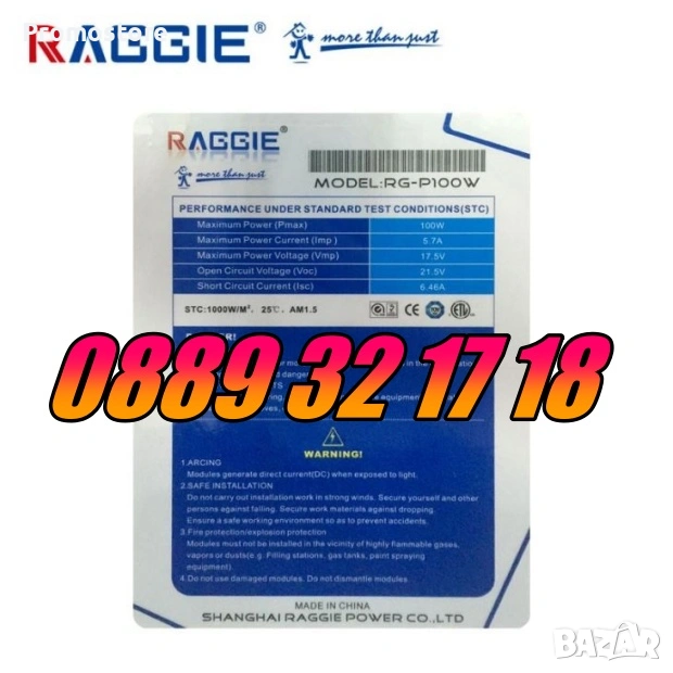Предлагаме соларни фотоволтаични панели марка Raggie с мощности от 10W до 380W