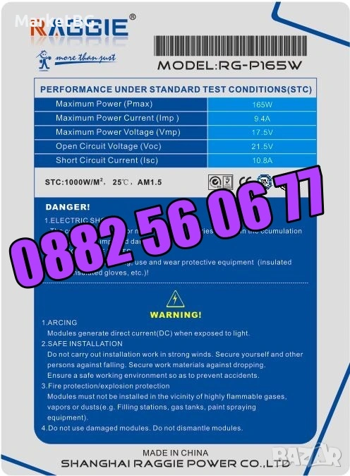 Предлагаме соларни фотоволтаични панели марка Raggie с мощности от 10W до 380W