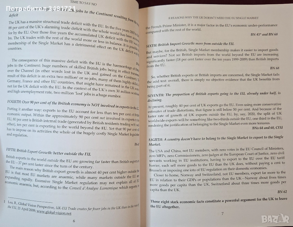 Настоящето издание излиза през 2011та година - 5 години преди Великобритания да гласува на референдума за излизане от ЕС. Тя съдържа 6 кратки проучвания и анализи, подкрепени с много таблици с различни данни. Заключенията в тях, както и използваните данни донякъде се припокриват. Темите им са - икономика на членството в ЕС, 8 причини защо на Великобритания не ѝ е нужен единния пазар, въпроси за различните сектори, алтернативи на пълноправното членство в ЕС, как Великобритания би спечелила, напускайки ЕС. Шести анализ, доста по-дълъг от първите 5, се фокусира върху бъдещето - какво би било ако Великобритания вече е напуснала ЕС, какви стъпки и промени следват.