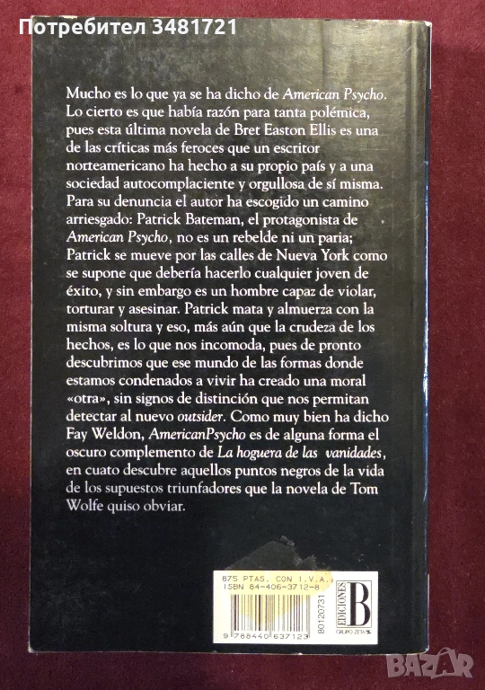 Книгата на Брет Истън Елис е съвременна класика, психологически трилър, по която е създаден и едноименният филм с Крисчън Бейл. Историята в нея е разказана от първо лице, от Патрик Бейтмън - високообразован, банкер с безупречна външност и кариера, под която се крие духовна празнота, заедно със злокобните мисли и действия на сериен убиец.