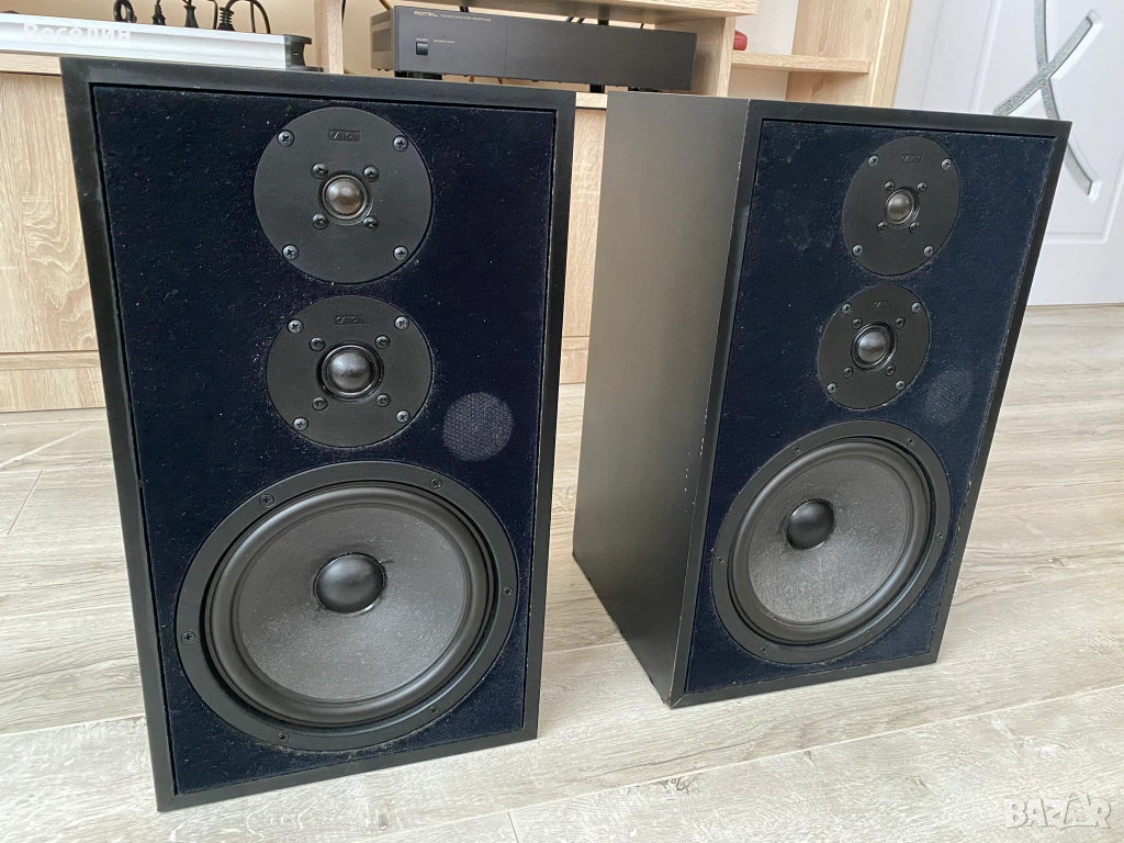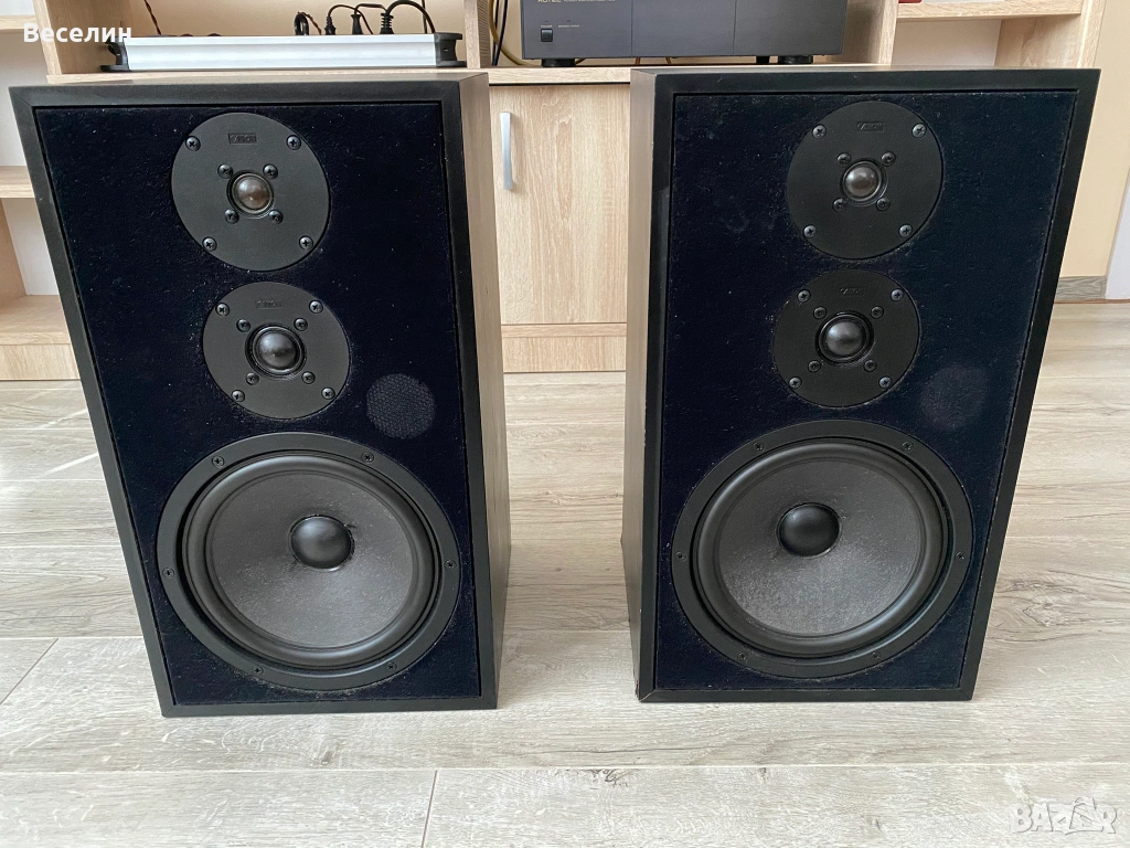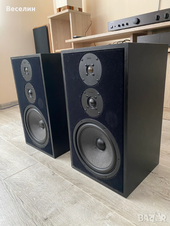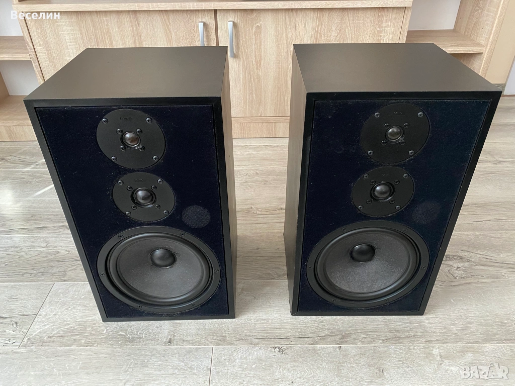 - Звуково много балансирани и ненатоварващи. Тоест, въпреки че са трилентови нямат твърде изявени средни честоти, както повечето хора биха очаквали. Според мен балансирани е точното определение в случая. Не са остри в определен диапазон, но и звукът не твърде топъл и мек. Подходящи са буквални за всякакви жанрове – от съвременни стилове, рок, рап, техно до стари плочи. Слушал съм ги и на грамофон и честно казано са много прощаващи: Прикриват несъвършенствата на винила, а не ги вадят на преден план както би се случило с по-остри тонколони. При дигитални източници детайлът е много добър.