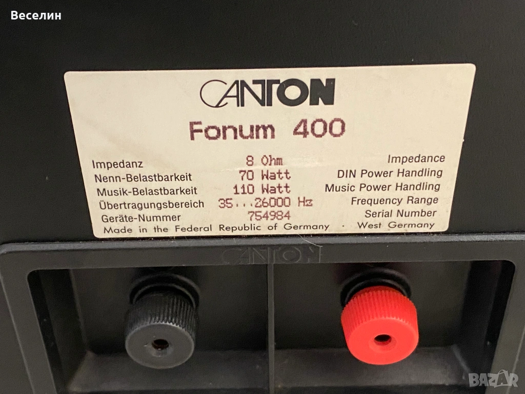 Canton Fonum 400 в перфектно техническо състояние и почти перфектно визуално. Еднакви серийни номера, тоест са заводски чифт.