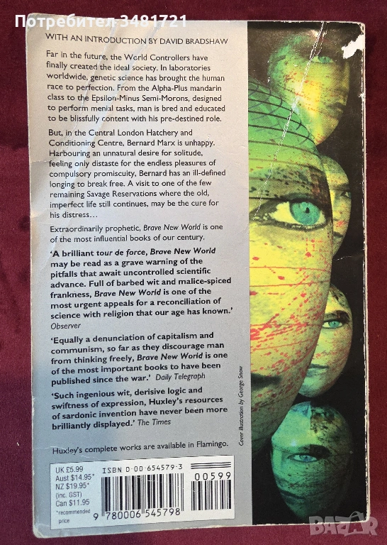 Но бяхме забравили, че наред с мрачната визия на Оруел имаше и друга - малко по-стара, малко по-малко известна, също толкова злокобна: „Прекрасният нов свят“ на Олдъс Хъксли. Противно на общоприетото схващане дори сред образованите, Хъксли и Оруел не предричаха сходни дистопии. Оруел ни предупреди, че можем да бъдем победени от външно наложено потисничество. Но във визията на Хъксли не е нужно „Голям брат“ да лишава хората от тяхната автономност, зрялост и история. Според него, хората сами щяха да започнат да обичат потисничеството си, да обожават технологиите, които отменят способността им да мислят.