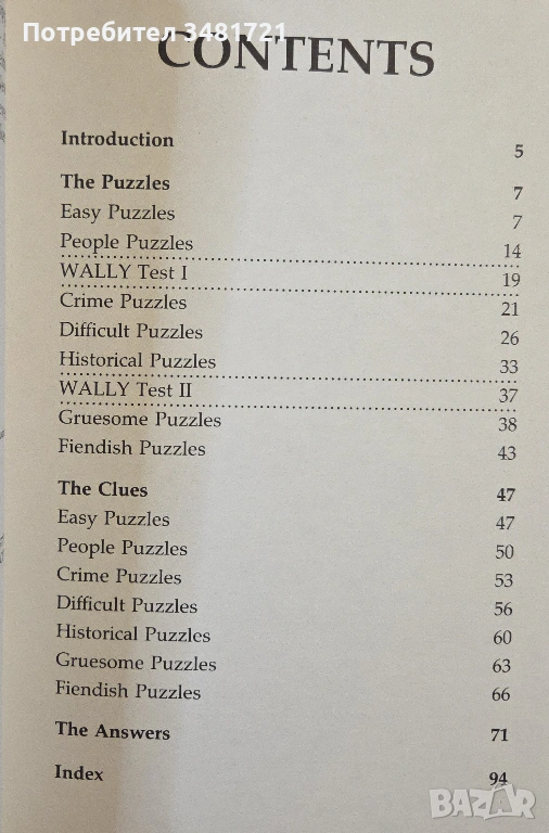 Книгата включва не само отговори, но и възможни подсказки, преди да се погледне към тях. Разделена е тематично с различни нива на трудност, сфери и теми.