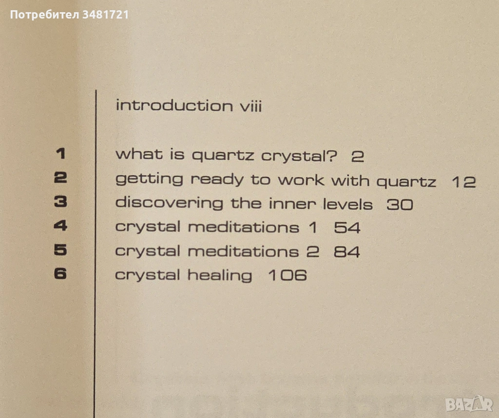 Тази книга е ръководство за работа с кристалната енергия в ежедневието. Авторът представя различни кристали, с фокус на кварцовите, описвайки както физическите им характеристики (цвят, структура, формиране и цветове), така и как те могат да бъдат използвани за подобряване на емоционалното здраве и физическо състояние на хората.
