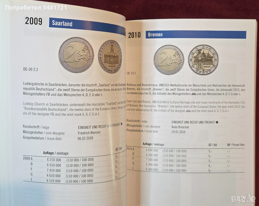 Двуезичен каталог - монетата от 2 евро / 2 Euro Coin Catalogue. Münzenkatalog
